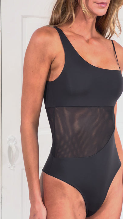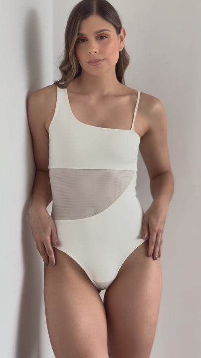 Body esencial elaborado en tela suave doble y tul. Su diseño cuenta con una sola manga y cargadera tiny removible y ajustable para mayor comodidad.